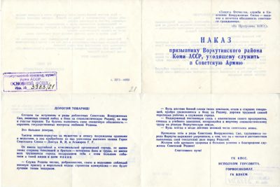Фото: 1. Наказ призывнику. Период создания: 1987 г. Местонахождение: Муниципальное бюджетное учреждение культуры «Воркутинский музейно-выставочный центр». https://goskatalog.ru/portal/#/collections?id=16169139 Наказ призывнику Воркутинского района Коми АССР, уходящему служить в Советскую Армию Бугаева Виталия. Состоит из 2 листов.
