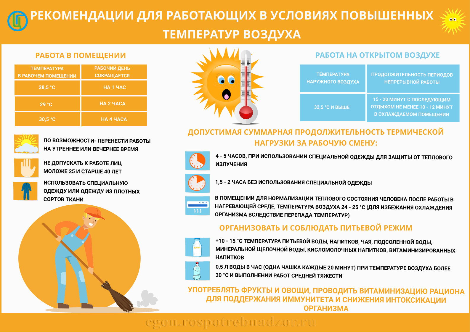 О соблюдении рекомендаций во время работы в условиях повышенной температуры воздуха Жаркая погода приводит к ухудшению условий труда.